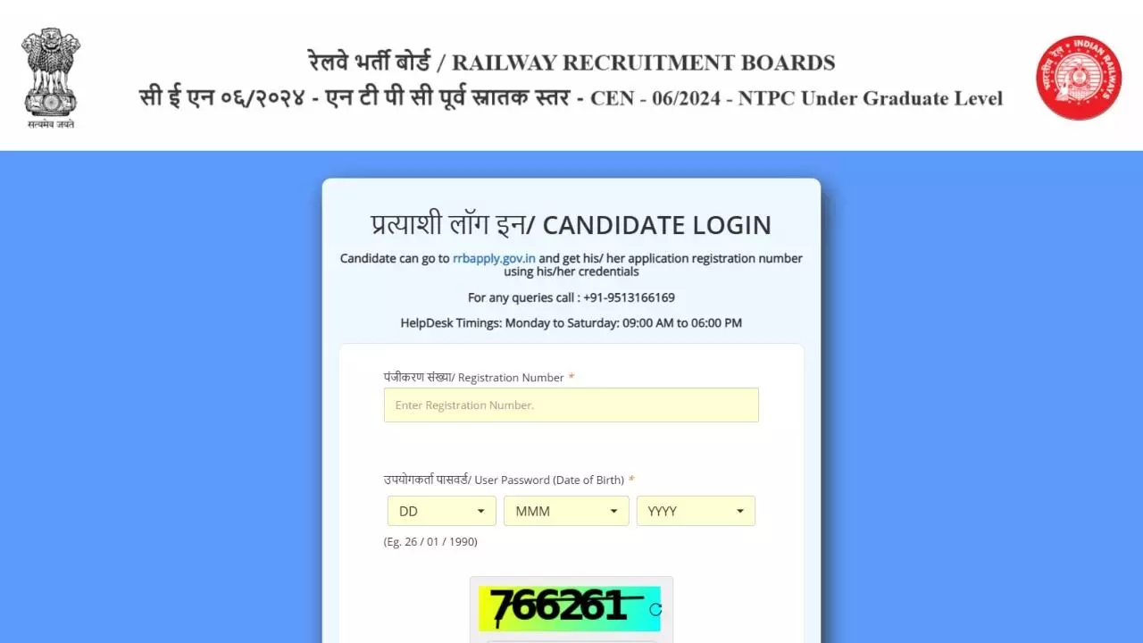 - ‘RRB NTPC Undergraduate Exam Admit Card’ लिंक पर क्लिक करें।
