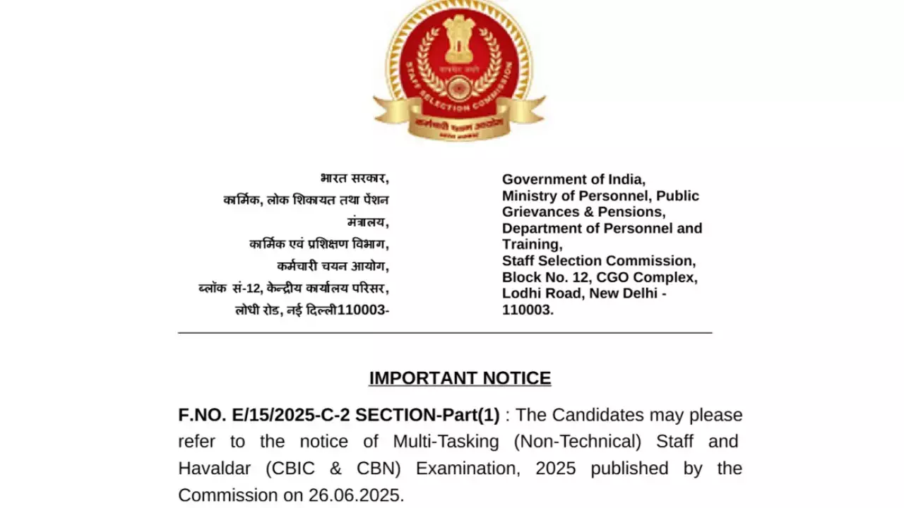 SSC ने साफ किया है कि अधिसूचना की बाकी सभी शर्तें यथावत रहेंगी।