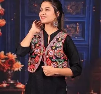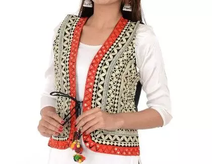 राजस्थान की मिरर वर्क कोटी हमेशा से ट्रेडिशन और फैशन का खूबसूरत संगम रही है। छोटे-छोटे शीशे और रंग-बिरंगे धागों से बनी यह कोटी जब लाइट में चमकती है तो आपका लुक और भी आकर्षक हो जाता है। इसे आप साधारण सफेद या काले कुर्ते के ऊपर पहन सकती हैं। गरबा की रंगीन रोशनी और डांस मूव्स में मिरर वर्क कोटी आपको स्पॉटलाइट में ला देगी। इस तरह की कोटी खासकर युवाओं में काफी ट्रेंड में है।