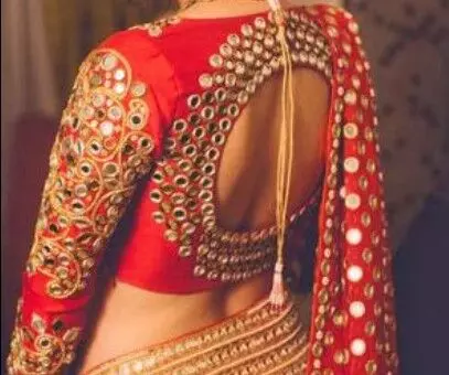 अगर आप अपने ब्राइडल लुक में कुछ चमक-दमक जोड़ना चाहती हैं, तो मिरर वर्क ब्लाउज सबसे उपयुक्त रहेगा। यह ब्लाउज पारंपरिक होते हुए भी ट्रेंडी दिखाई देता है। छोटे-छोटे शीशों की चमक रोशनी में झिलमिलाती है, जिससे दुल्हन का लहंगा और भी आकर्षक लगता है। यह डिज़ाइन गुजरात और राजस्थान की पारंपरिक कारीगरी से प्रेरित है, जो हर दुल्हन को देसी और स्टाइलिश लुक देती है।