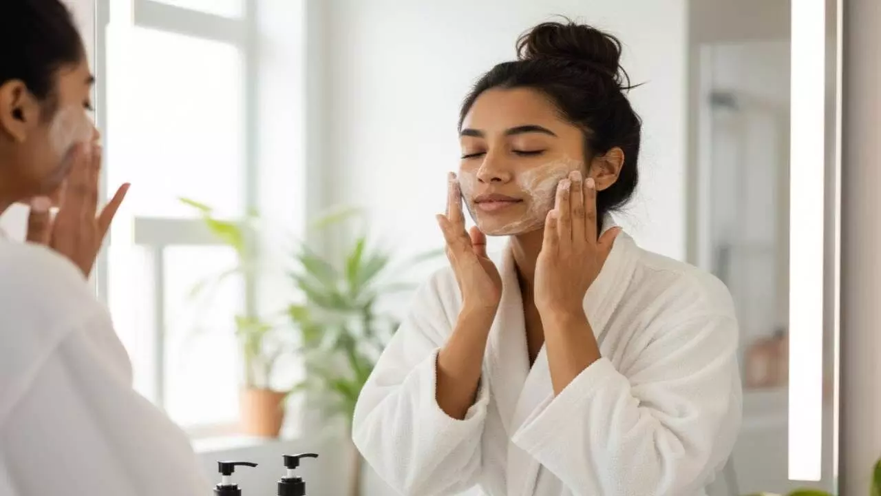 मेकअप हटाने के बाद क्लींजिंग ज़रूर करें: मेकअप रिमूवर से चेहरा साफ करने के बाद भी स्किन पर कई बार ऑयल और प्रोडक्ट्स के कण रह जाते हैं। इसलिए डबल क्लींजिंग करें पहले ऑयल-बेस्ड क्लींजर, फिर माइल्ड फेसवॉश से चेहरा धोएं। इससे पोर्स डीपली क्लीन होते हैं और स्किन डल नहीं लगती।