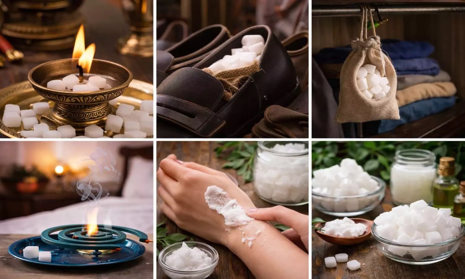 Camphor Uses: कपूर का नाम आते ही सबसे पहले पूजा-पाठ और आरती की तस्वीर सामने आ जाती है। घर के मंदिर में जलता कपूर जहां माहौल को शुद्ध करता है, वहीं इसकी खुशबू मन को भी सुकून देती है। लेकिन क्या आप जानते हैं कि कपूर सिर्फ धार्मिक कामों तक सीमित नहीं है?