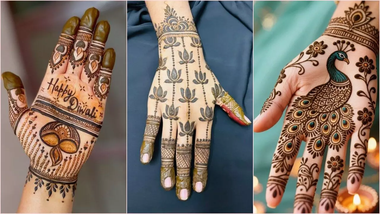 Mehndi Design For Diwali 2025: हिंदू धर्म में दिवाली का विशेष महत्व होता है, जिसे देशभर में हर्षोल्लास और धूम-धाम के साथ मनाया जाता है। यह त्योहार सिर्फ मिठाइयों तक सीमित नहीं रहता है, बल्कि इस दिन बच्चों से लेकर बड़े नए-नए कपड़े पहनकर खूब सजते-धजते हैं। ऐसे में महिलांए और लड़कियां भी खूब श्रृंगार करती हैं। दिवाली के मौके पर ट्रेडिशनल कपड़ों के साथ हाथों में मेहंदी रचाना काफी शुभ माना जाता है। इसलिए सेलिब्रेटी से लेकर आम लोग तक दिवाली के शुभ अवसर पर मेहंदी जरूर लगवाते हैं। ऐसे में हम यहां दिवाली के लिए कुछ खास और यूनिक मेंहदी डिजाइन आईडिया लेकर आए है, जिन्हें आप अपने हाथों में रचा सकती है। आइए देखें।