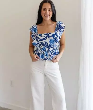 सफेद जींस के साथ खूबसूरत टॉप (Image: grok)