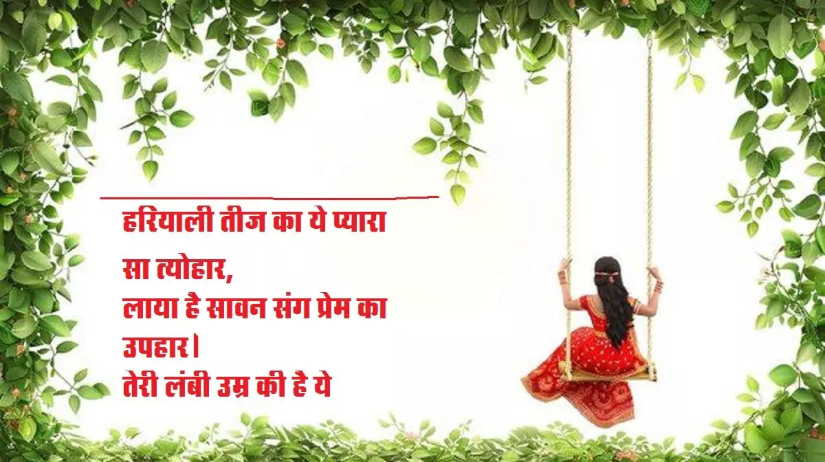 - "मेहंदी के रंग जितना गहरा हो तेरा प्यार, और झूले की ऊँचाई जितनी हो हमारी खुशियाँ – हैप्पी हरियाली तीज!"