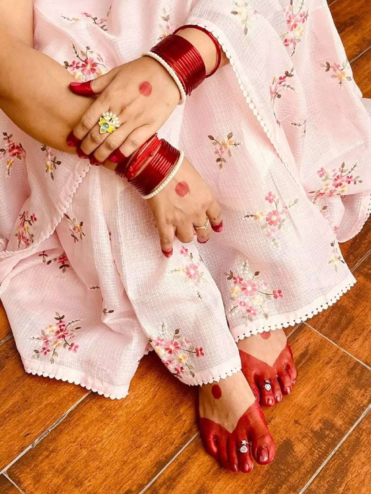 सभी महिलांए तीज के मौके पर सुहाग की निशानी आलता को पैरों नें जरूर लगाती है, इससे न केवल पैरों की खूबसूरती में चार-चांद लगता है बल्कि यह एक शुभ शगुन भी माना जाता है। अगर आप भी इस तीज पर अपने पैरों को खास अंदाज़ में सजाना चाहती हैं, तो यहां हम आपके लिए लाए हैं 10+ सुंदर और ट्रेंडी आलता डिज़ाइन्स, जो आपके पारंपरिक लुक को बनाएंगे और भी खास।