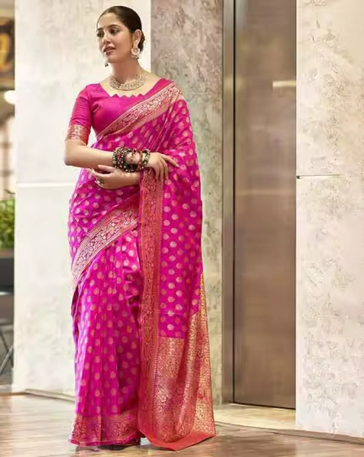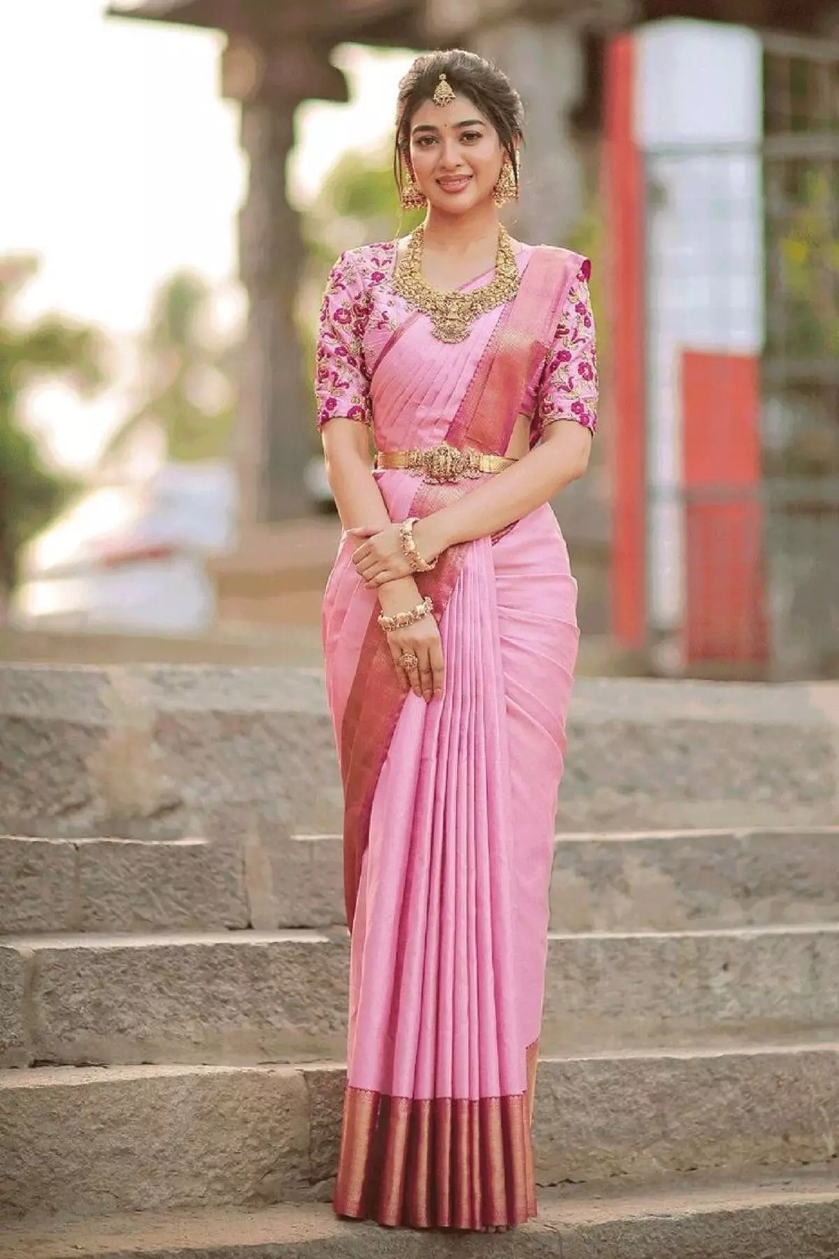 ऑर्गेंजा साड़ी हैव ब्लॉज के साथ (Organza Saree In Pink)
