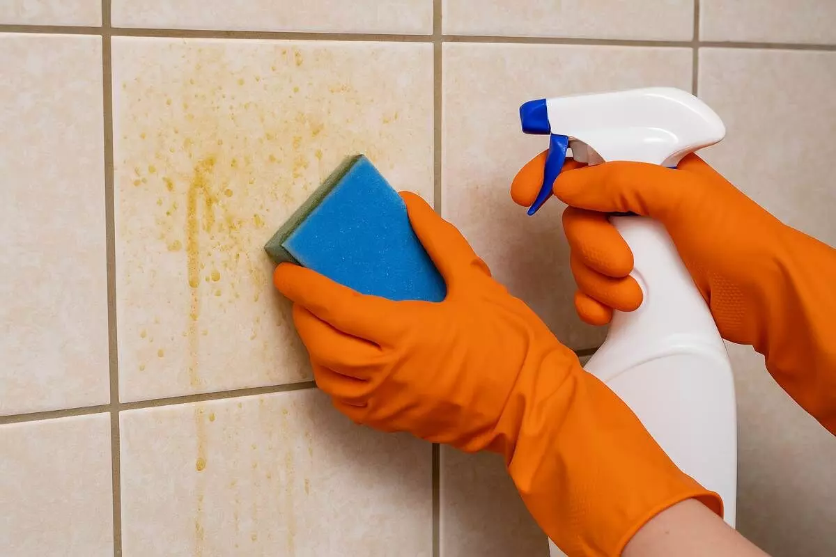 समान मात्रा में सिरका और पानी मिलाकर एक स्प्रे बोतल में डालें। इसे टाइल्स पर छिड़कें और 5-10 मिनट बाद स्क्रबर से रगड़ें। सिरका टाइल्स की चमक भी लौटाता है और बैक्टीरिया भी मारता है।