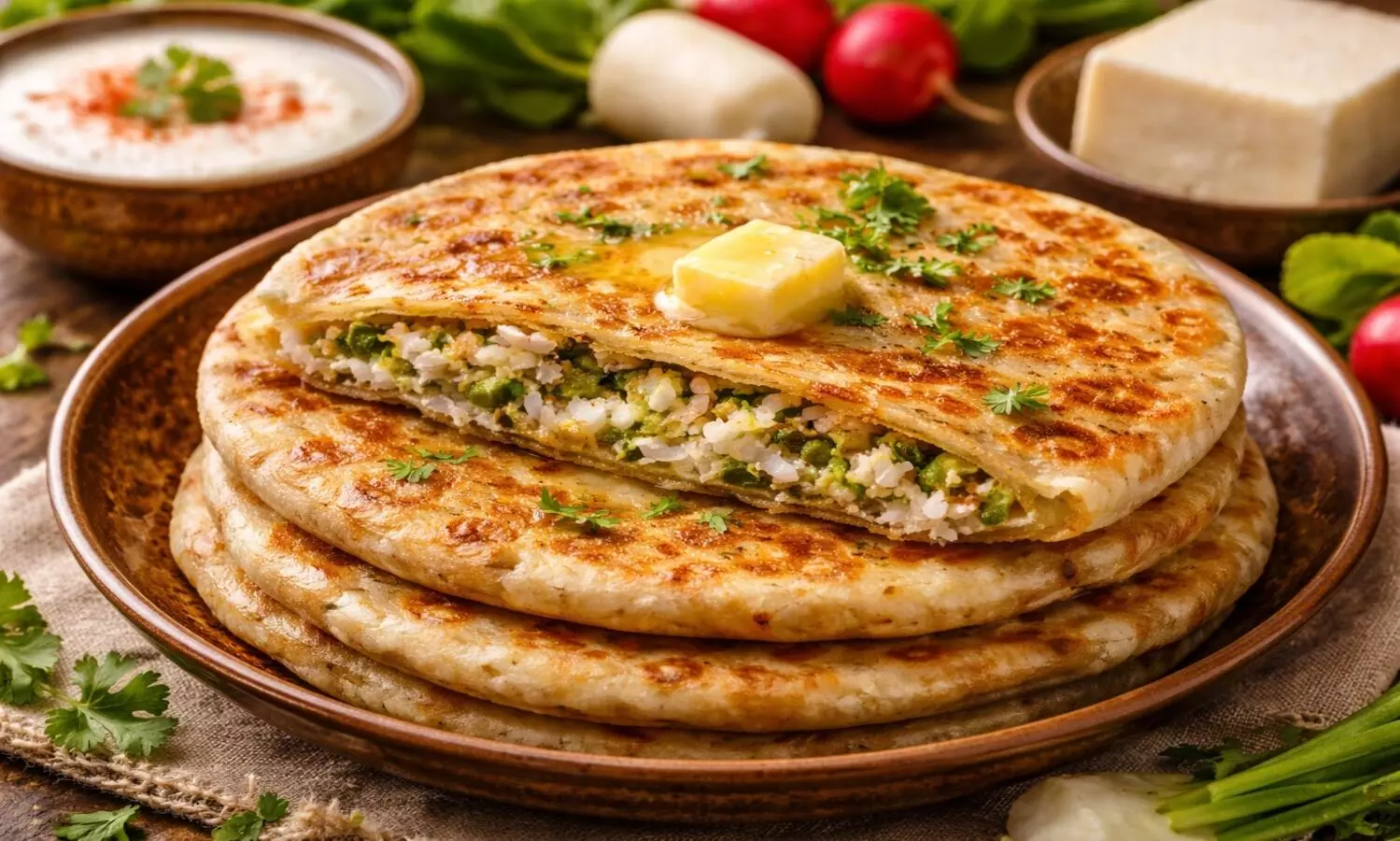 अगर आप मूली के पराठे में कद्दूकस किया पनीर मिला दें, तो इसका स्वाद और पोषण दोनों दोगुने हो जाते हैं। पनीर पराठे को सॉफ्ट, जूसी और प्रोटीन-रिच बनाता है। यह कॉम्बिनेशन बच्चों से लेकर बड़ों तक सभी को खूब पसंद आता है।