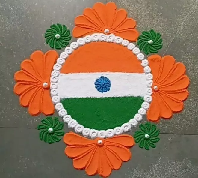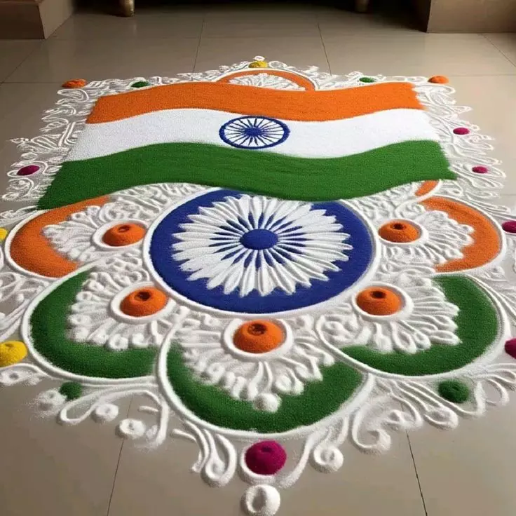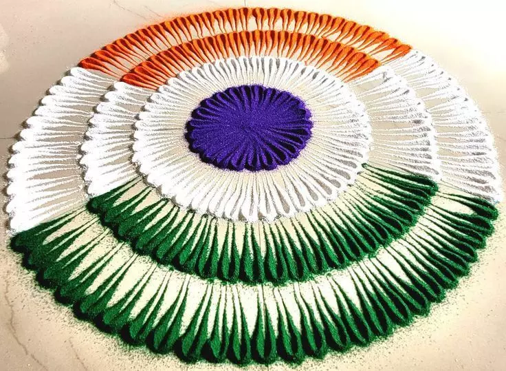 1. तिरंगा फ्लावर रंगोली