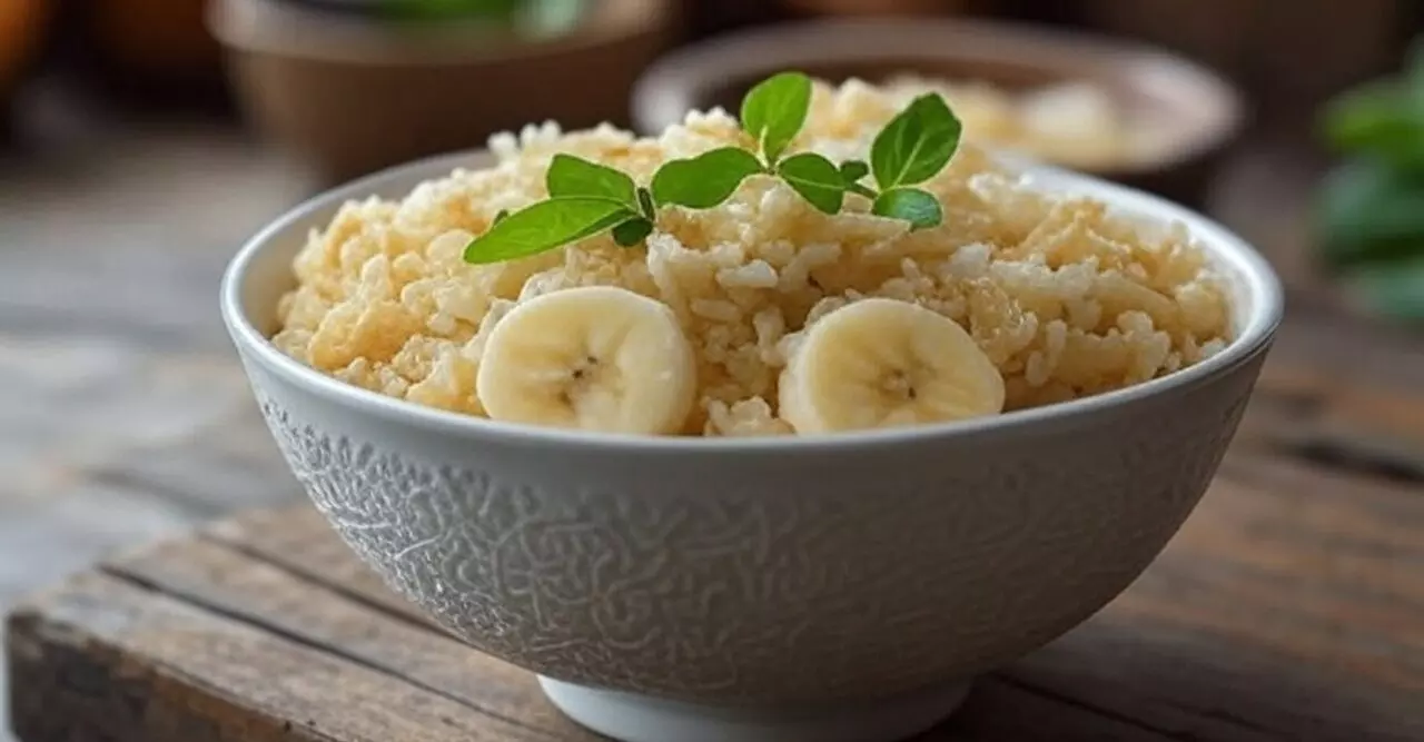 - ऊपर से नारियल के टुकड़े, केले के स्लाइस और तुलसी पत्ते डालें।