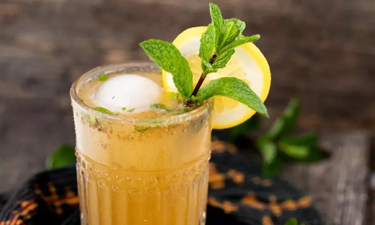 3. बर्फ के टुकड़े डालें और पुदीने के पत्तों से सजाएं।