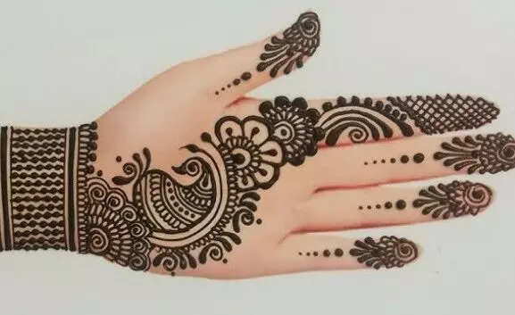 आजकल हथेलियों की बजाय हाथ के पीछे की मेहंदी डिजाइनों का भी ट्रेंड खूब देखने को मिल रहा है। इसमें चेन स्टाइल, ब्रेसलेट पैटर्न या अंगूठी से जुड़ने वाली डिजाइन काफी ट्रेंडिंग है। ये डिजाइन मॉडर्न लुक देने के साथ-साथ आपके ओवरऑल आउटफिट को भी कॉम्प्लिमेंट करता है।
