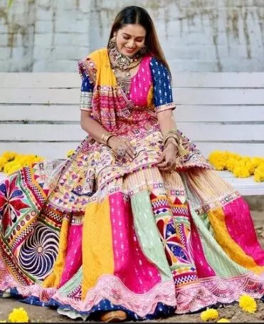 नवरात्रि की बात हो और गुजराती स्टाइल का ज़िक्र न हो, ऐसा हो ही नहीं सकता। ये हमेशा से गरबा नाइट्स की शान रहा है। इसमें हैवी कढ़ाई, मिरर वर्क और चमकीले रंगों का शानदार मेल देखने को मिलता है। रेड, ऑरेंज, ब्लू और येलो जैसे ब्राइट कलर्स इस डिजाइन में सबसे ज्यादा पसंद किए जाते हैं। चौड़ा और फ्लेयरी घेर गरबा के दौरान डांस मूव्स को और भी खूबसूरत बना देता है।
