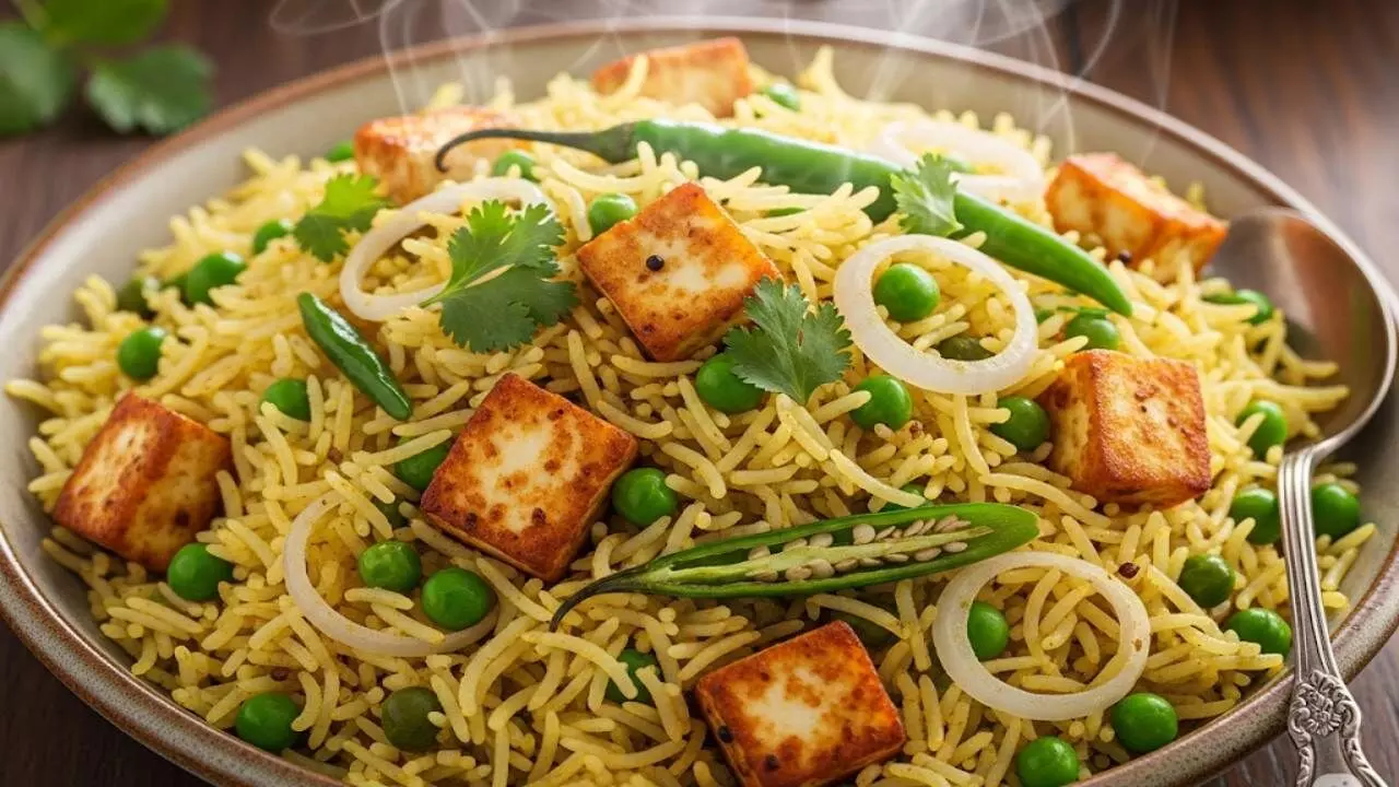 चावल के साथ जब सब्जियां और मसाले मिलते हैं तो इसका स्वाद और भी लाजवाब हो जाता है। खासतौर पर जब इसमें पनीर और हरी मटर का तड़का लगे, तो पुलाव का मज़ा दोगुना हो जाता है।