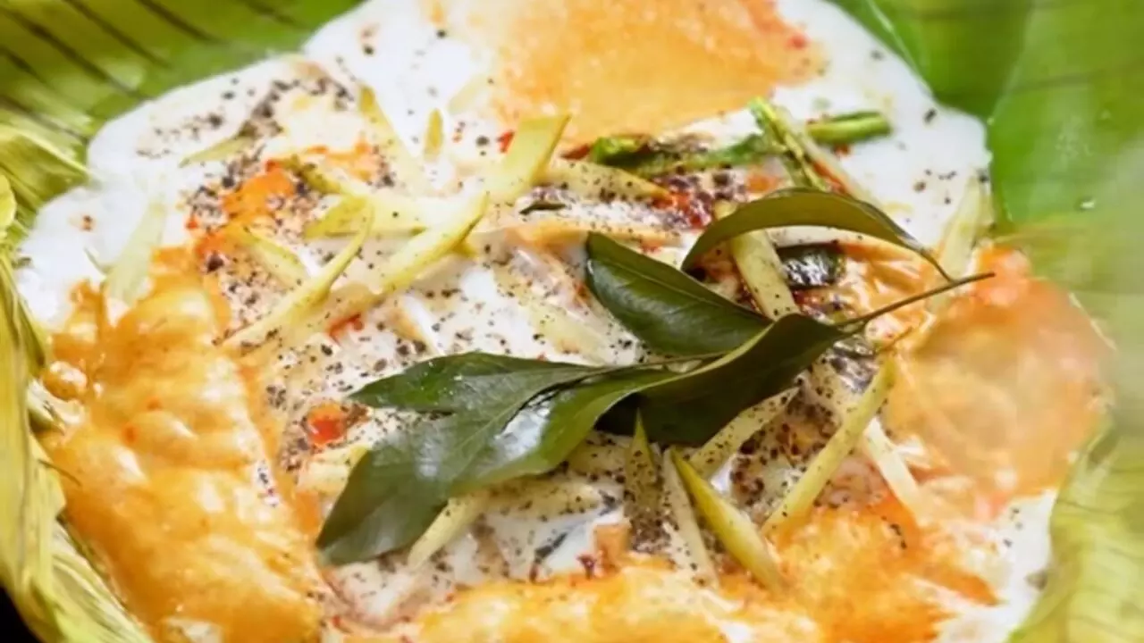 स्टेप 5: अब इसमें नारियल का दूध डालें और हरी मिर्च, अदरक, कच्चा आम, करी पत्ते और काली मिर्च डालें।