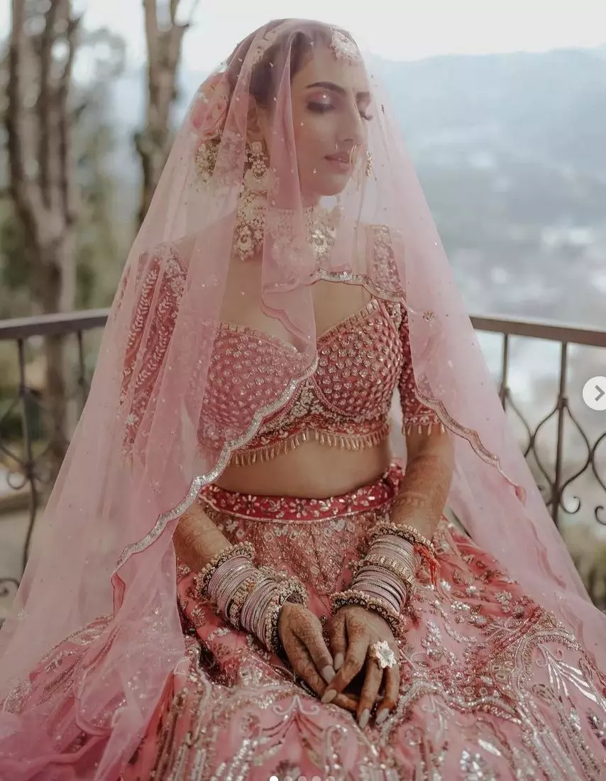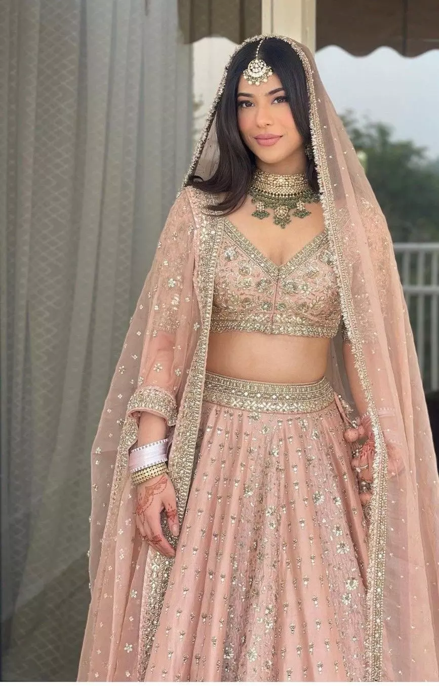 पीच रंग में वह नर्मी और चमक है जो किसी भी त्वचा पर निखरकर आता है। यह रंग उन दुल्हनों के लिए परफेक्ट है, जो अपनी शादी में कुछ अलग रंग ट्राई करना चाहती हैं। इसके अलावा, पीच रंग की खासियत यह है कि यह दिन और रात दोनों समय की शादी में समान रूप से सुंदर दिखता है।