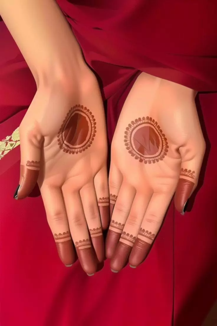इसके अलावा, यदि आप सिंपल और यूनिक डिजाइन चाहती है, तो ये गोल टिक्की डिजाइन ट्राय कर सकती है। इन्हें बनाना बहुत आसान है, जिसे आप मिनटों में रचा सकती है, वो भी बिना किसी की सहायता के। यह डिजाइन हमेशा ट्रेंड में रहते हैं। चाहे तीज हो, सावन या फिर राखी-दिवाली इन मेंहदी डिजाइन को हमेशा पसंद किया जाता है। इसलिए आप भी इस राखी इस तरह के डिजाइन्स को जरूर ट्राय करें।