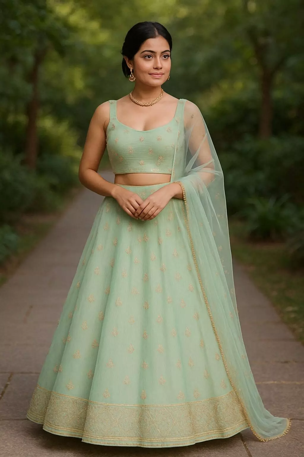 अगर आपको लहंगे पसंद हैं, लेकिन भारी कपड़े नहीं, तो ट्राय करें- पटोला प्रिंट या फ्लोरल प्रिंट वाले लाइटवेट लहंगे। गोटा-पट्टी या मिरर वर्क वाले लहंगे इस बार भी ट्रेंड में हैं। इन्हें सेमी-क्रॉप टॉप या शॉर्ट कुर्ती के साथ स्टाइल करें और एथनिक ज्वेलरी जोड़ें।