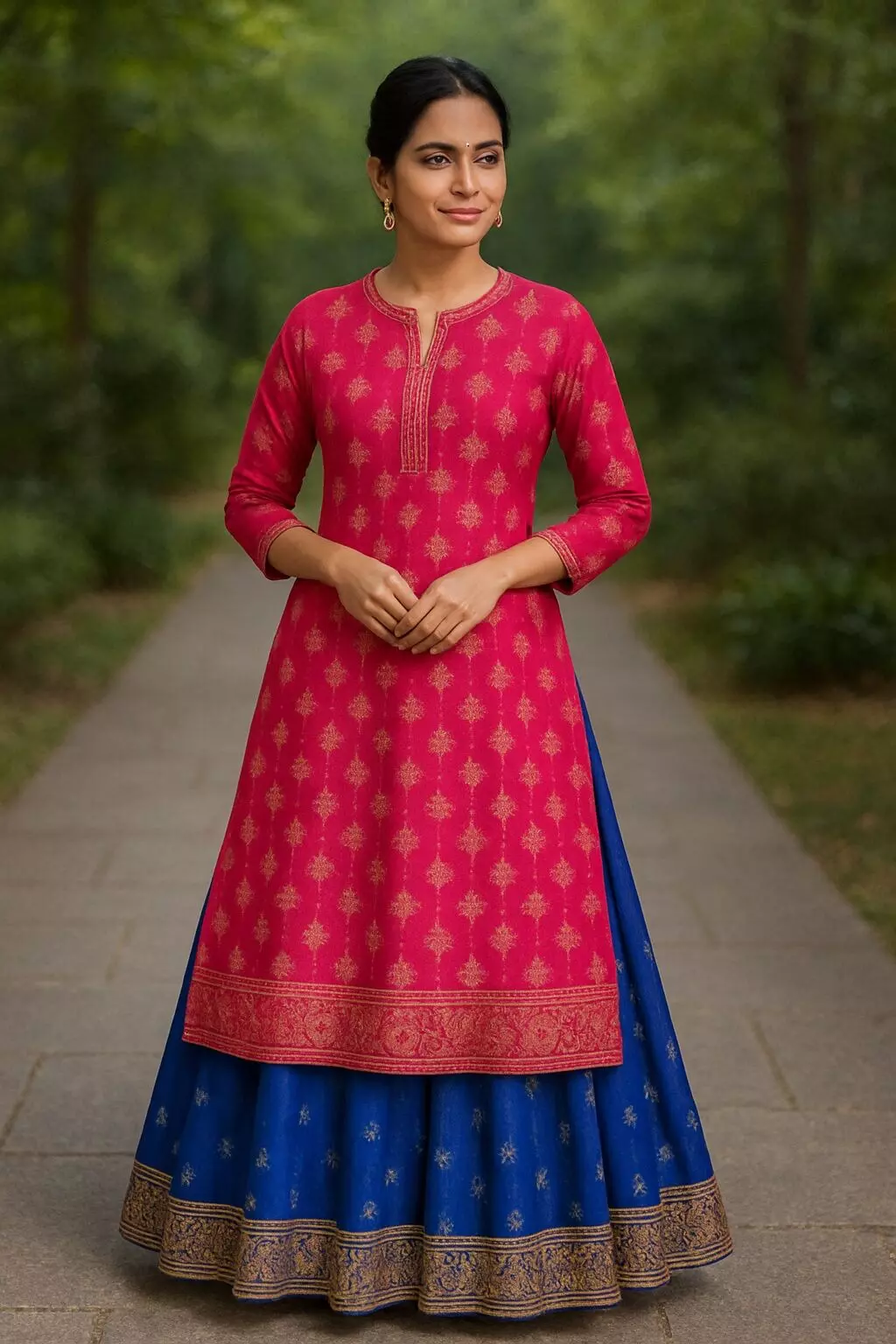 लॉन्ग कुर्ती विद स्कर्ट - कंफर्ट और स्टाइल दोनों