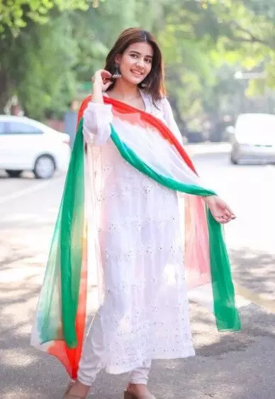 - व्हाइट सूट के साथ तिरंगे रंगों वाला दुपट्टा पहनें।