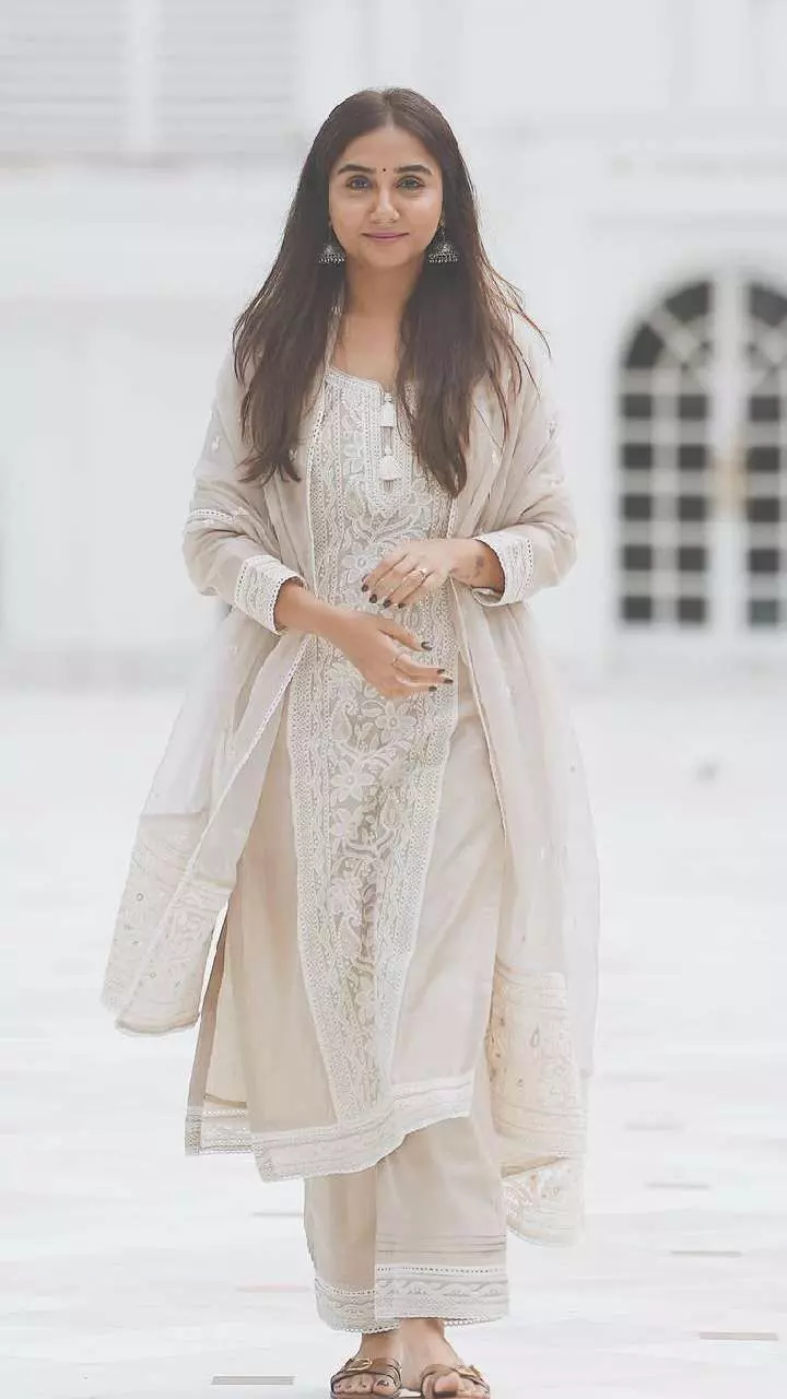 अगर आप थोड़ा मॉडर्न और ट्रेंडी लुक चाहती हैं, तो सफेद या नारंगी रंग का शॉर्ट कुर्ता पलाज़ो के साथ पहन सकती हैं। यह लुक खासतौर पर ऑफिस या दोस्तों के साथ सेलिब्रेशन के लिए परफेक्ट है।