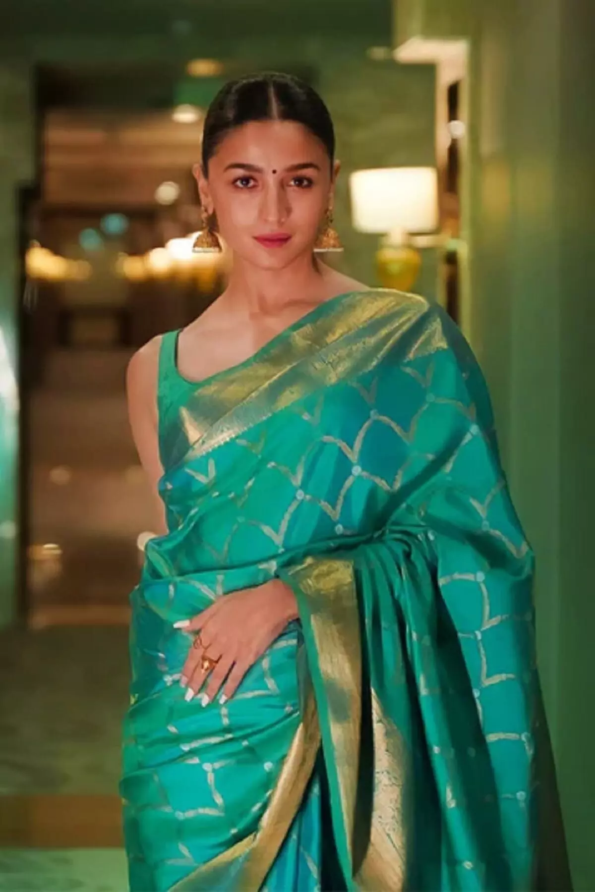 अगर आप सिंपल और क्लासी लुक चाहती हैं, तो आलिया भट्ट की ग्रीन बनारसी साड़ी से इंस्पिरोशन लें। हल्के मेकअप और बन वाली हेयर स्टाइल के साथ यह लुक बेहद सॉफ्ट और मॉडर्न लगता है, जो सावन के छोटे आयोजनों में खूब जंचेगा।