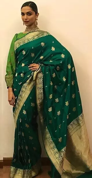 2. दीपिका पादुकोण की सिल्क ग्रीन साड़ी – रॉयल और एलीगेंट