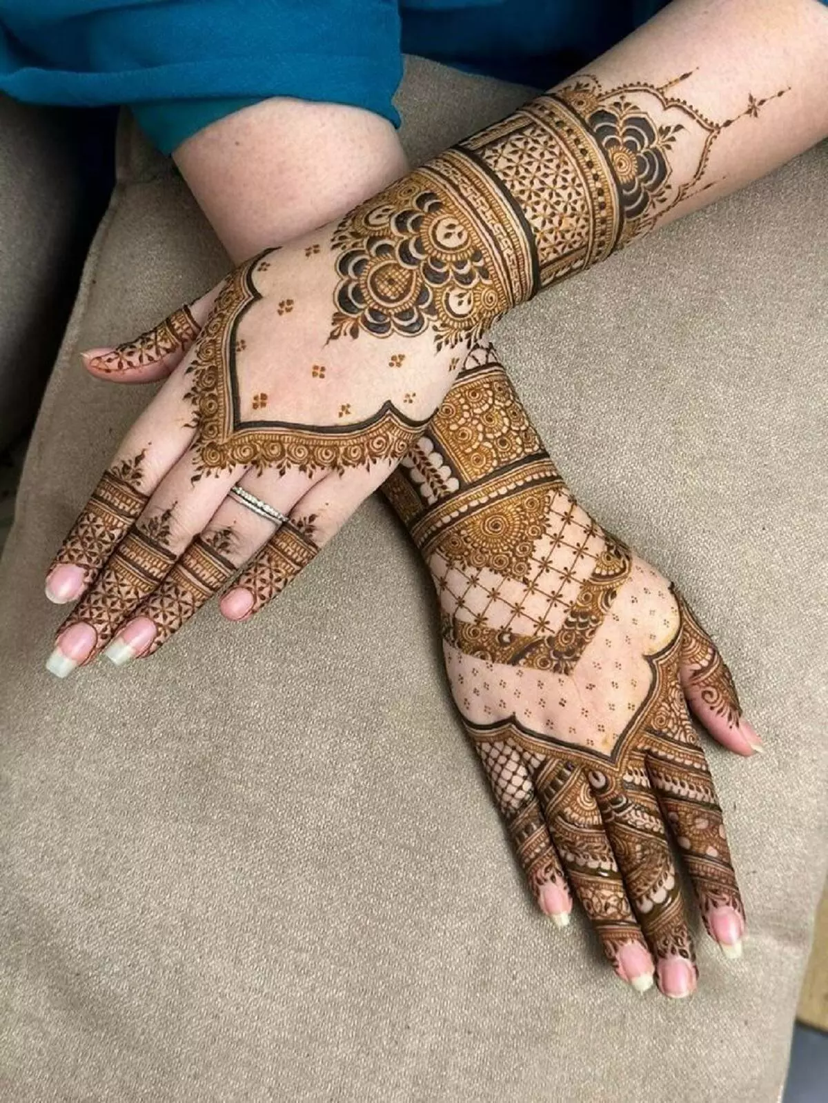 मेहंदी के कई प्रकार के डिजाइन होते है। जैसे अरेबिक, मिनीमल, कड़ा, बेल - पत्ति, आदि। लेकिन फुल हैंड मेहंदी पैटर्न की बात ही अलग होती है। यह मेंहदी रचने के बाद हाथों की रंगत में चार-चांद लगी देती है। हालांकि इसमें टाइम थोड़ा ज्यादा लगता है, लेकिन दिखने में बेहद खूबसूरत लगती है।