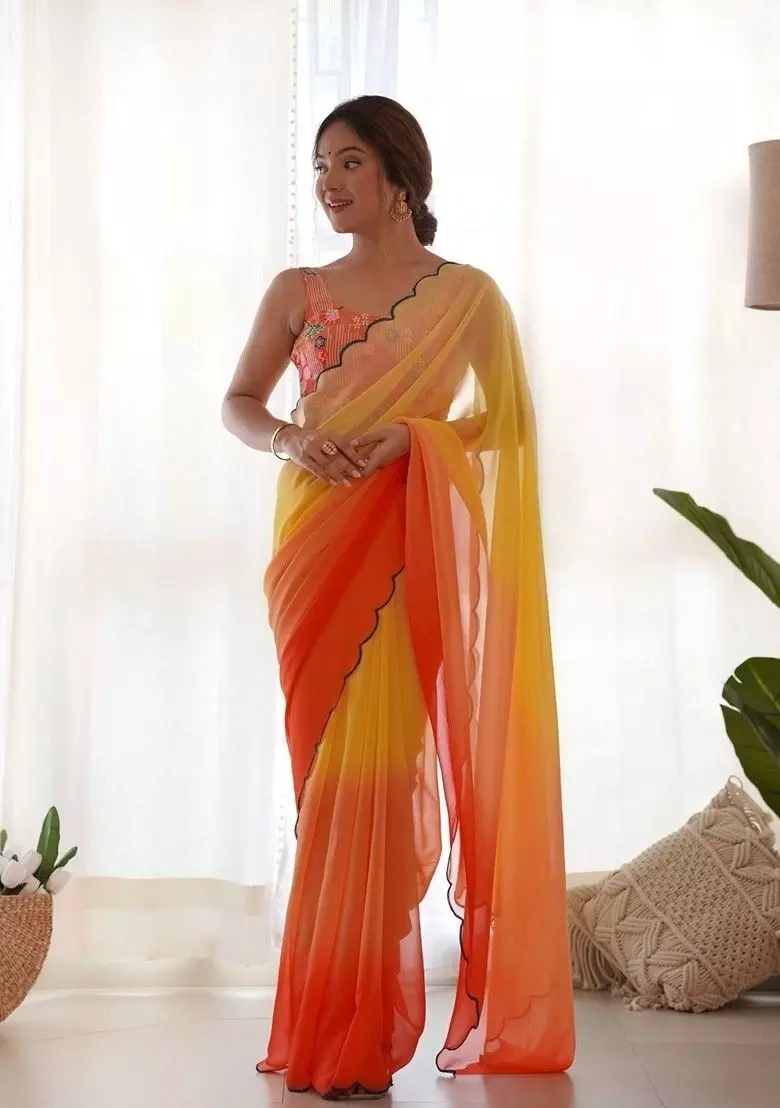 Georgette साड़ियाँ हल्की, फ्लोइंग और ड्रेपिंग में बहुत सुंदर होती हैं। ये खासतौर पर पार्टी और फंक्शन के लिए पसंद की जाती हैं क्योंकि इनमें विभिन्न तरह के प्रिंट और एम्ब्रॉयडरी डिजाइन आसानी से मिल जाते हैं। Georgette साड़ी पहनने में आरामदायक होती है और यह हर मौसम में स्टाइलिश लगती है।