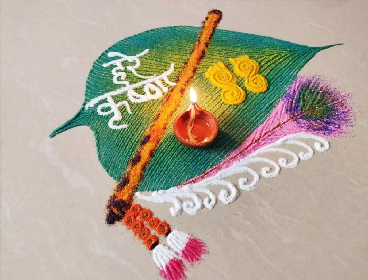 लड्डू गोपाल के चरण चिन्ह और बांसुरी की रंगोली डिज़ाइन भी आप जन्माष्टमी पर अपने घर में जरूर बनाएं। यह न सिर्फ घर को सजाएगी बल्कि भक्तिभाव को भी और गहरा करेगी।