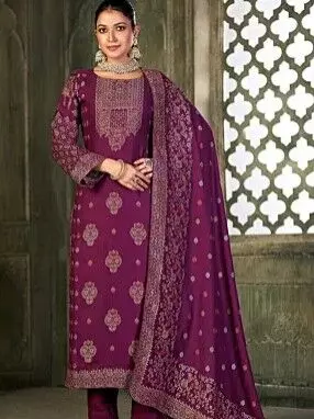 कश्मीरी पश्मीना सूट को सर्दियों की शान कहा जाता है। इसकी सबसे बड़ी खूबी है इसका हल्कापन और प्राकृतिक गर्माहट। पश्मीना ऊन से बने सूट त्वचा पर बेहद मुलायम महसूस होते हैं। इन पर किए गए कश्मीरी कढ़ाई वाले डिज़ाइन पारंपरिक और शाही लुक देते हैं। हल्के सुनहरे या हल्के गुलाबी रंगों में बने पश्मीना सूट दिन के समारोहों के लिए बेहतरीन विकल्प हैं। इन्हें मैचिंग शॉल या दुपट्टे के साथ पहनें और स्टाइलिश झुमकों से लुक को पूरा करें। कश्मीरी पश्मीना सूट उन महिलाओं के लिए परफेक्ट हैं, जो शाही लुक पसंद करती हैं।