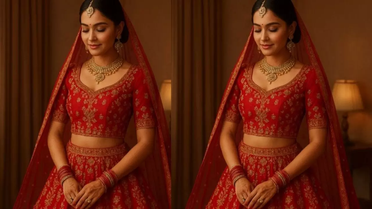 करवा चौथ पर पहनें शादी वाला लहंगा (Image: Grok)