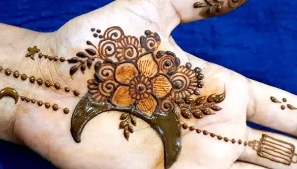 ईद और चांद का रिश्ता बेहद खास है। तो क्यों न मेहंदी में भी वही झलक दिखे? इस डिजाइन में आधा चांद हथेली के बीचोंबीच उभरता है, उसके चारों ओर तारों का काम इसे और खास बनाता है। यह डिजाइन सिंपल भी है और यूनिक भी, जो हर किसी की नजर खींच लेगा।