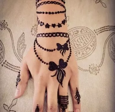 अगर आप मॉडर्न और स्टाइलिश लुक चाहती हैं, तो ब्रेसलेट स्टाइल मेहंदी एकदम परफेक्ट है। इसमें हाथ के कलाई वाले हिस्से पर ब्रेसलेट जैसा डिजाइन बनता है और ऊंगलियों तक बारीक चेन पैटर्न्स जोड़े जाते हैं। ये डिजाइन न सिर्फ फैशनेबल लगता है, बल्कि बिना किसी एक्सेसरी के भी हाथों को रॉयल टच देता है।