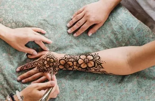 अगर आप चाहती हैं कम समय में ज्यादा सुंदर लगना है तो अरबिक मेहंदी डिज़ाइन बेस्ट ऑप्शन है। मोटे लाइनवर्क, बोल्ड पैटर्न्स और खाली जगहों का खूबसूरत संतुलन इसे सबसे सुंदर बनाता है। यह देखने में आकर्षक लगता है और जल्दी सूख भी जाता है।