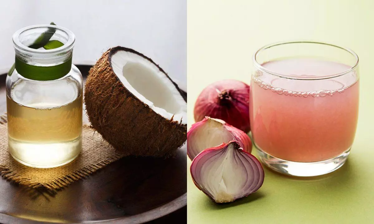 1. प्याज का रस और नारियल तेल का मिश्रण