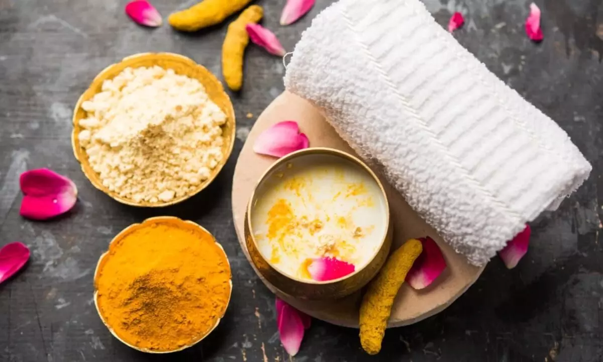 बेसन में चुटकीभर हल्दी और थोड़ा सा गुलाबजल मिलाकर पेस्ट बनाएं। हल्के हाथों से चेहरे पर रगड़ें। यह स्किन की गंदगी निकालता है और नेचुरल निखार लाता है।