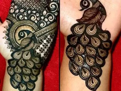 मोर हमेशा से भारतीय परंपरा का प्रतीक रहा है। मेहंदी में जब मोर की आकृति बनाई जाती है तो वह न सिर्फ देखने में आकर्षक लगती है, बल्कि शुभता और प्रेम का प्रतीक भी मानी जाती है। मोर के पंखों की बारीक जालियां और घुमावदार डिजाइन हाथों को रॉयल लुक देते हैं। इस डिजाइन में जाली का पैटर्न कलाई तक फैला हो तो ये और भी शानदार लगता है। अगर आपकी साड़ी या लहंगा पहनने वाली हैं तो मोर और जाली की मेहंदी खूबसूरत लग सकते हैं।