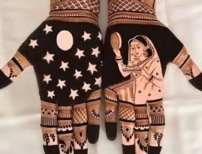 अगर आप कुछ अलग चाहती हैं तो सितारों वाली मेहंदी आपके लिए बिल्कुल सही है। इसमें छोटे-छोटे तारों और गोल बिंदियों से बनी जालियां और आकृतियां बनाई जाती हैं। यह डिजाइन देखने में बेहद सुंदर लगता है। रात के आसमान जैसे हाथों पर फैले सितारे आपकी सुंदरता को और बढ़ा देते हैं।