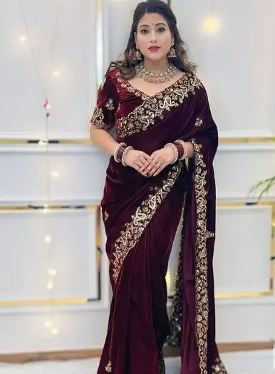 अगर आप सर्दियों में शादी अटेंड करने की तैयारी कर रही हैं और सोच रही हैं कि ऐसा क्या पहना जाए सुंदर लगे और ठंड से भी बचाए, तो वेलवेट साड़ी आपके लिए परफेक्ट विकल्प है। चाहे आप जरी वर्क पसंद करें, फ्लोरल डिजाइन या मखमली, वेलवेट साड़ी हर रूप में अनोखी और आकर्षक लगी है।
