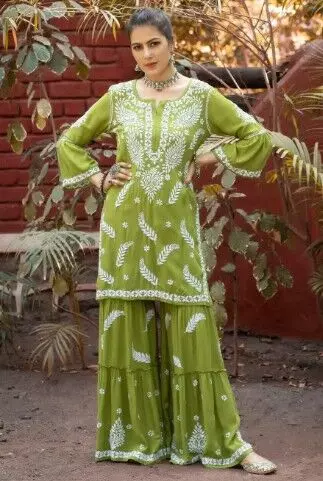 चिकनकारी ग्रीन कुर्ती और शरारा