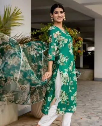 ग्रीन फ्लोरल प्रिंटेड सूट
