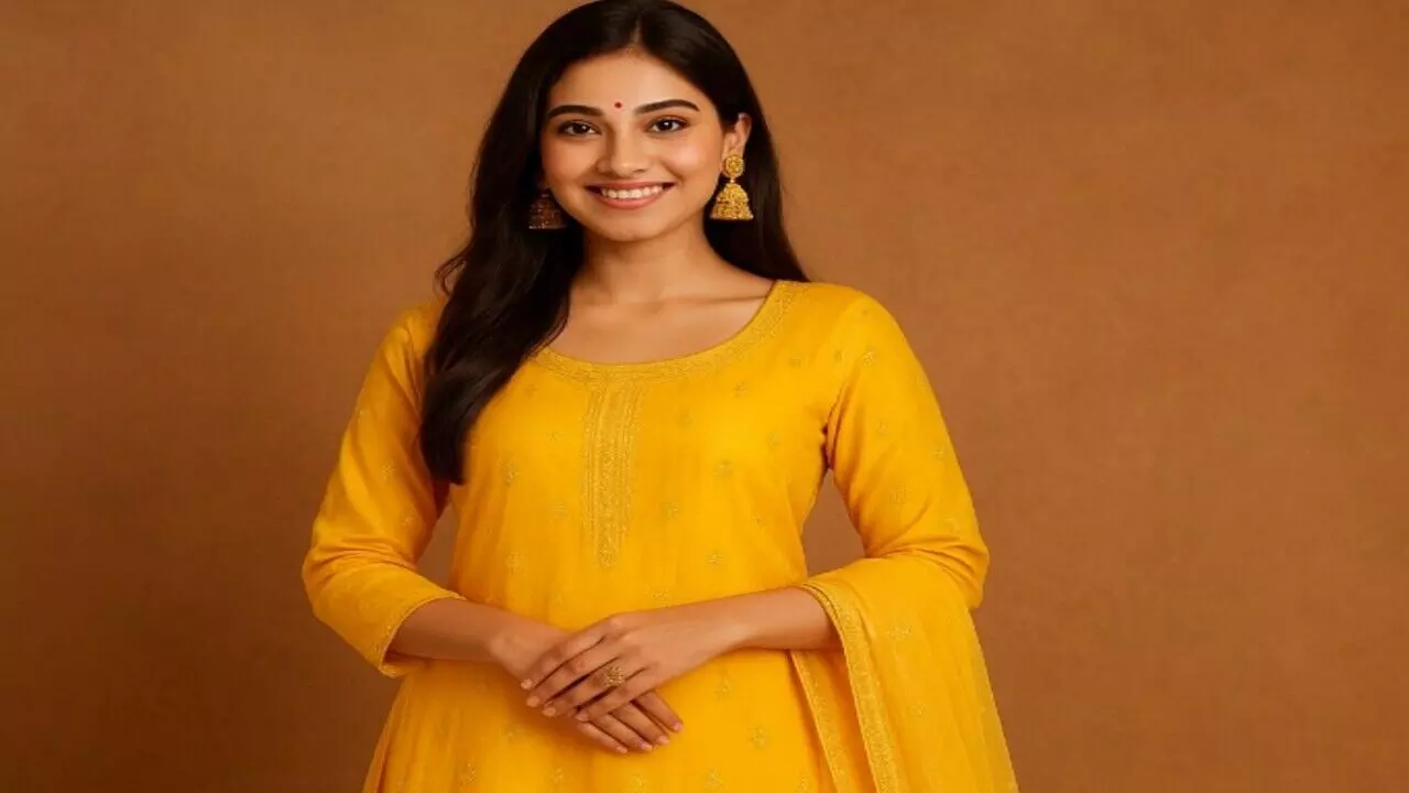- पलाजो सूट: अगर आप मॉडर्न और ट्रेडिशनल का कॉम्बिनेशन चाहती हैं, तो पीले रंग का पलाज़ो सूट परफेक्ट रहेगा।