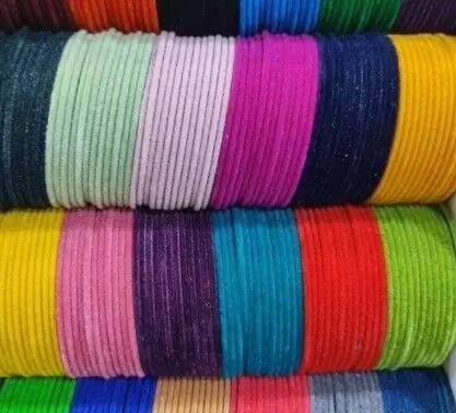 वेलवेट चूड़ियां उन महिलाओं के लिए परफेक्ट हैं जो स्टाइल के साथ कम्फर्ट भी चाहती हैं। यह मुलायम और हल्की होती हैं, जिससे लंबे समय तक पहनने में भी आराम मिलता है। वेलवेट चूड़ियों को कढ़ाई वाले लहंगे या एम्ब्रॉएडरी वाले सलवार सूट के साथ पेयर करें। यह हाथों को एक सॉफ्ट लुक देती हैं। गहरे रंग जैसे ब्लू, वाइन रेड और ग्रीन के वेलवेट बैंगल इस साल खास ट्रेंड में हैं।