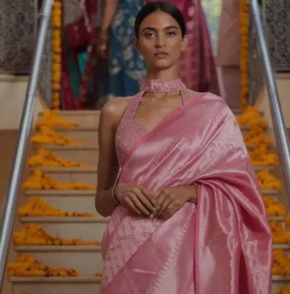 गुलाबी रंग कोमलता, स्नेह और सौंदर्य का प्रतीक माना जाता है। यह रंग खासकर युवतियों और नई नवेली दुल्हनों में बहुत लोकप्रिय है। हरियाली तीज जैसे फेमिनिन त्योहार पर गुलाबी पहनना न सिर्फ शुभ होता है, बल्कि ये आपके पूरे लुक को निखार देता है। पिंक सिल्क, नेट या जॉर्जेट की साड़ी या लहंगा, जिसमें सिल्वर या मिरर वर्क हो, बहुत खूबसूरत लगता है। साथ में झूमके और गजरा पहनें।