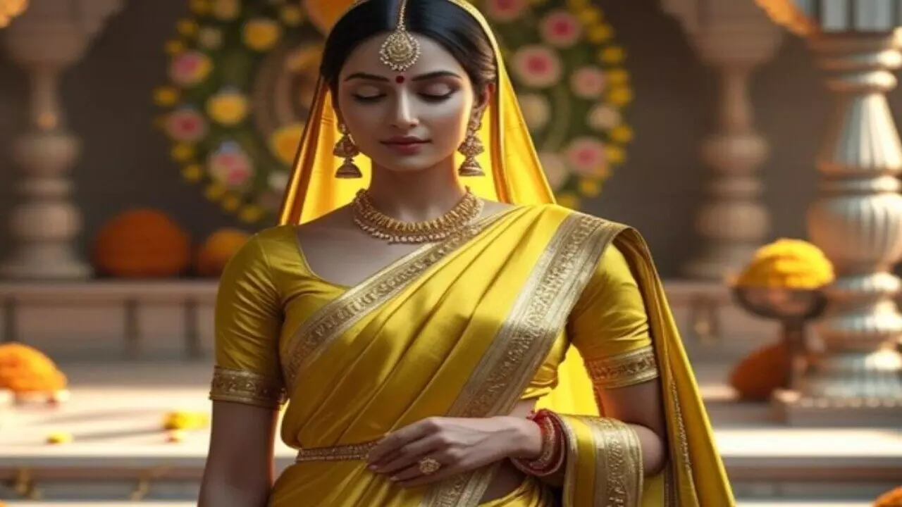 सावन सोमवार के चौथे दिन पीले रंग की साड़ी पहनें (Image: AI)