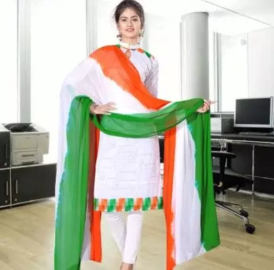 अगर आप चाहते हैं कि आपके लुक में देशभक्ति का पूरा अहसास हो, तो तिरंगा प्रिंट वाला दुपट्टा सबसे बेहतरीन विकल्प है। इसमें केसरिया, सफेद और हरा तीनों रंग होते हैं, जिससे आपका आउटफिट तुरंत आकर्षण का केंद्र बन जाएगा। तिरंगा दुपट्टा सिंपल सफेद सूट के साथ पहनें और बाकी एक्सेसरीज़ मिनिमल रखें ताकि दुपट्टा ही हाइलाइट बने।