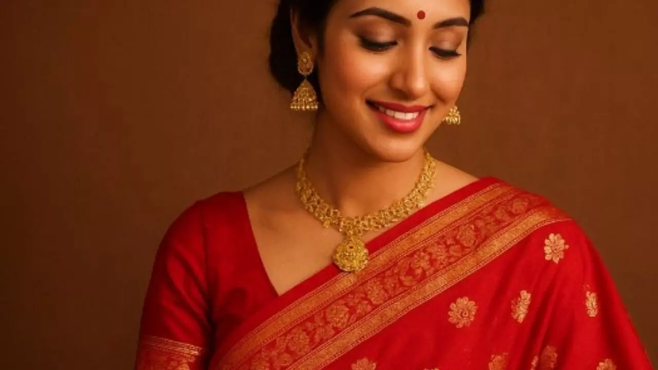 ओणम पर पहनें लाल रंग की साड़ी (Image: Grok)