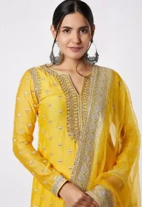 गोटा पट्टी येलो स्ट्रेट कुर्ता सूट